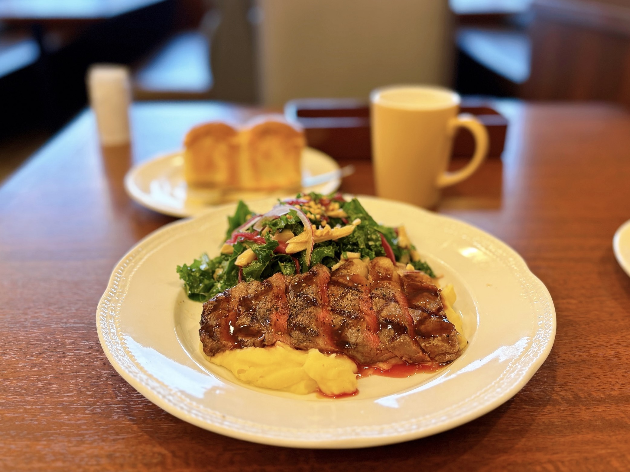 ロイホのステーキサラダ。これ食べるとあまりの美味しさに元気になる。
